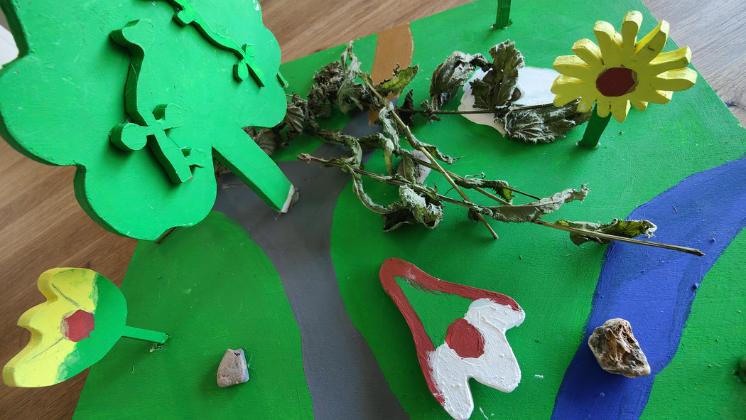 Er selbst sei wahnsinnig aufgeregt gewesen, als er ihr sein Werk überreichte und freute sich offentsichtlich über ihre Freude, erzählt sie zu Hause und zeigt uns den bunten Holzgarten.